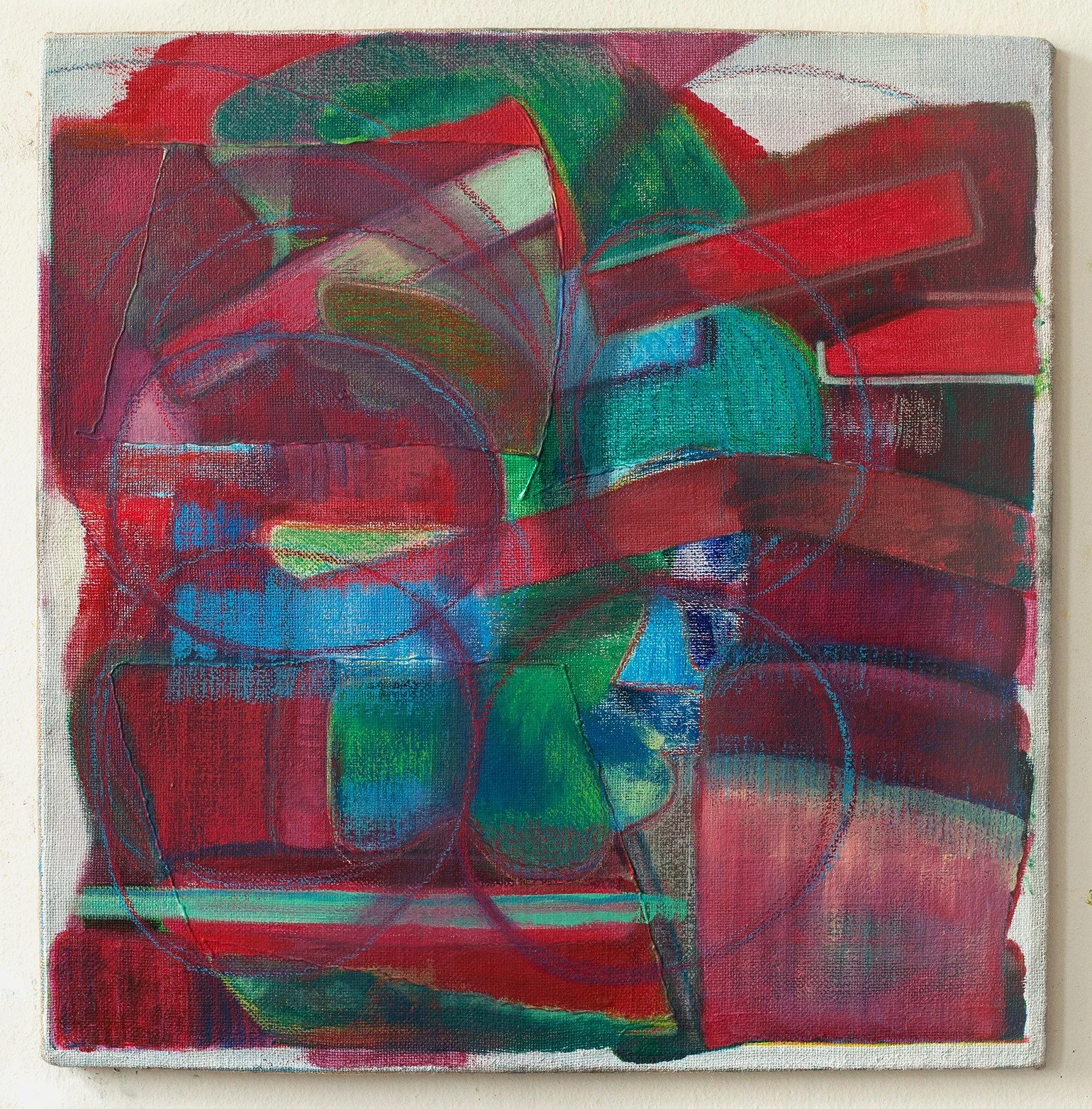 Movable hardboard walls and paintings from the set “Rahmen“, oil, gouache und crayon on jute/cotton, 2020